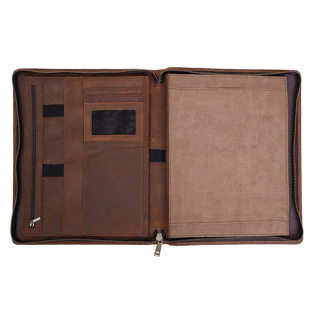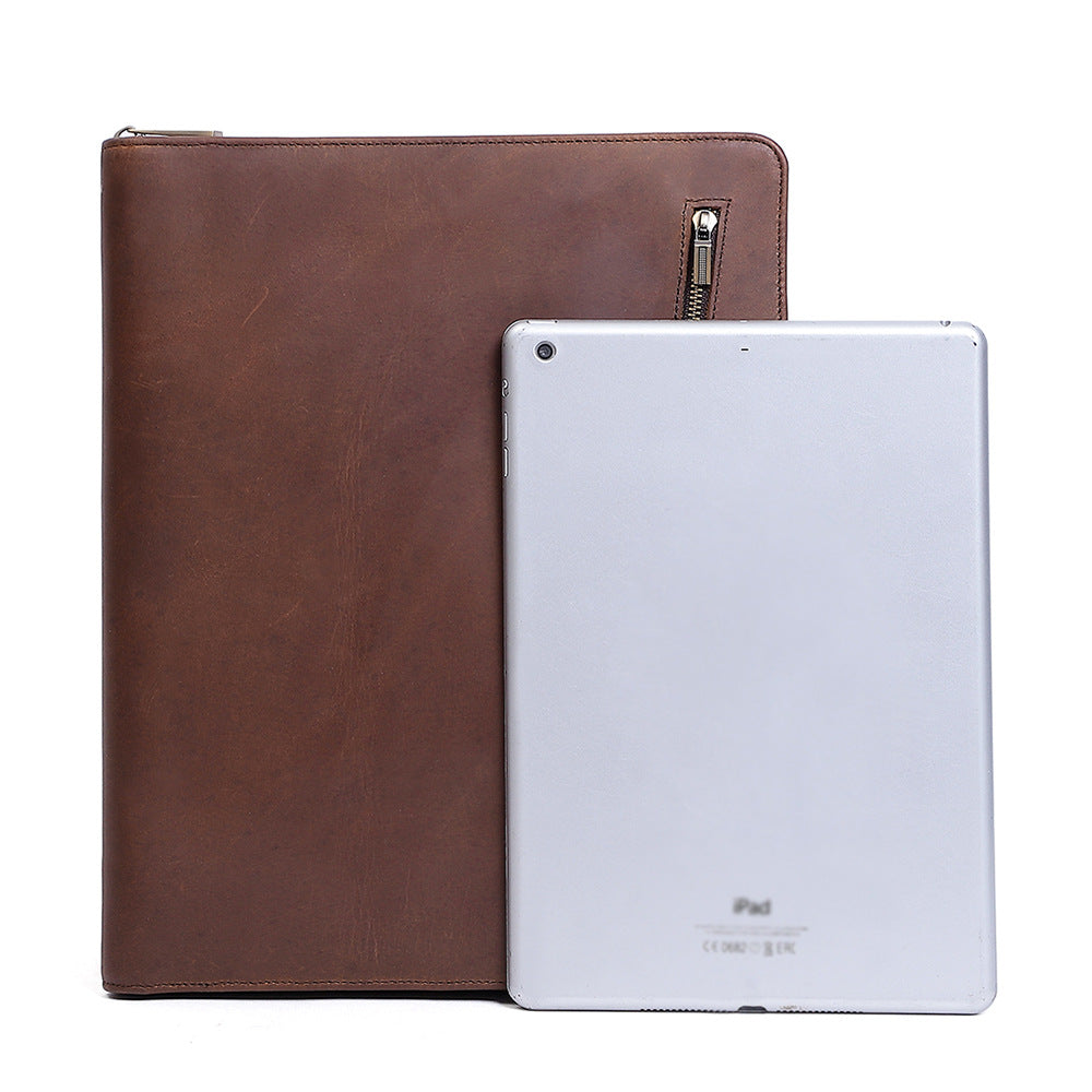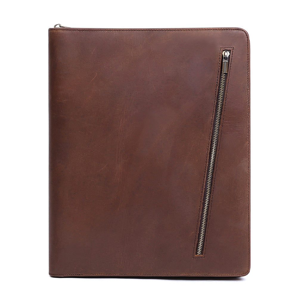 Genuine Leather Padfolio with Insert Holder, A5 File Folder with Pouch, A5 Leather Portfolio, Gifts for Him/ Her