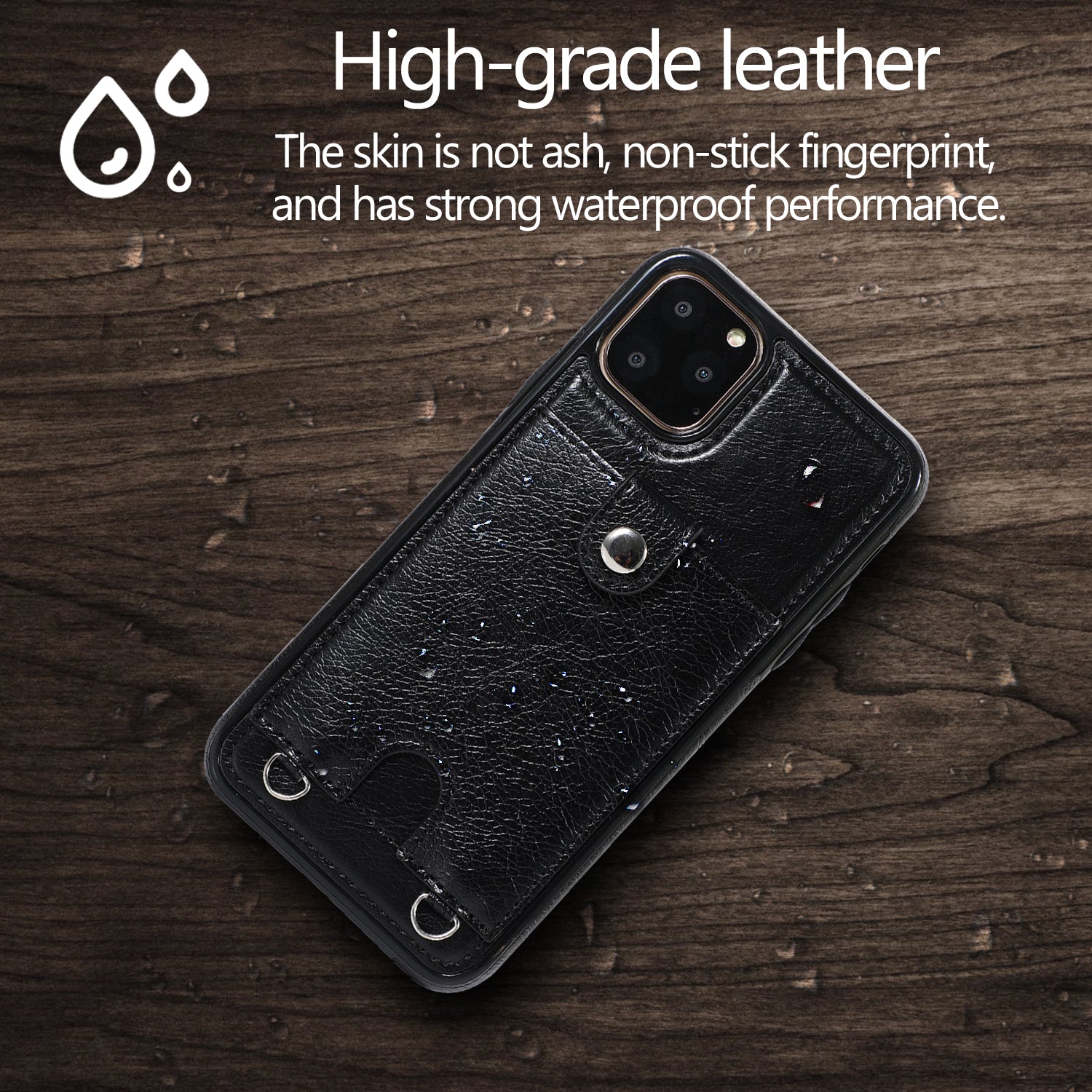 Customizable Leather iPhone Case Wallet with Shoulder Strap for iPhone 13/ iPhone 12/ iPhone 11/ iPhone XS/ iPhone 8/ iPhone 7/ iPhone SE 2nd