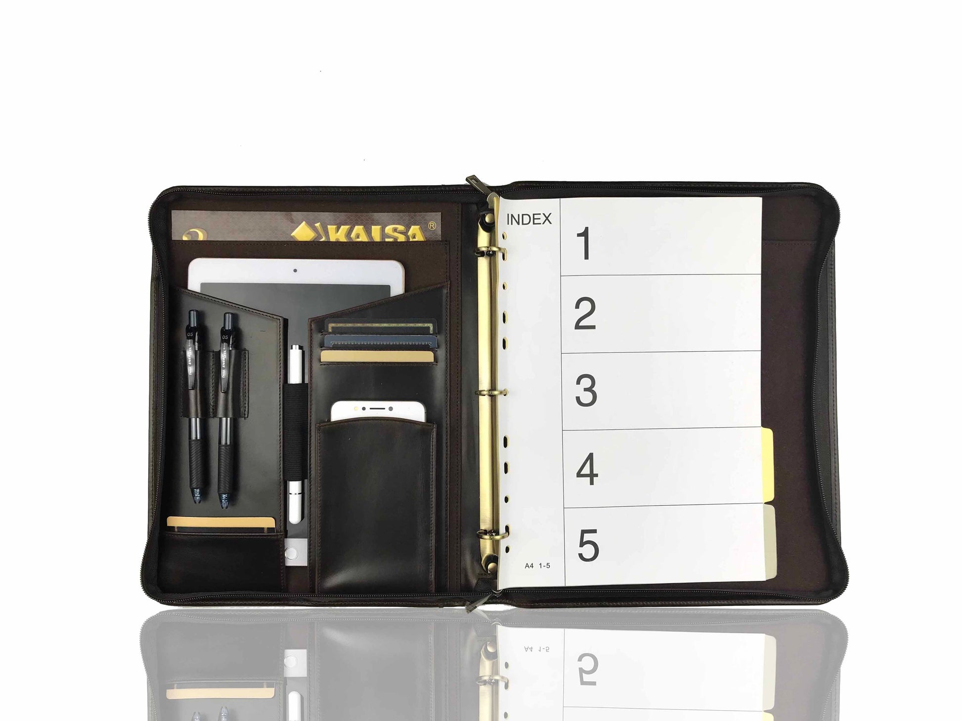- √ Versatility: 1 pocket on each side for A4/ legal paper; 1 pocket for iPad Pro 12.9; 4 card slots; 2 pen holder; 1 smartphone pocket; 1 3-ring binder