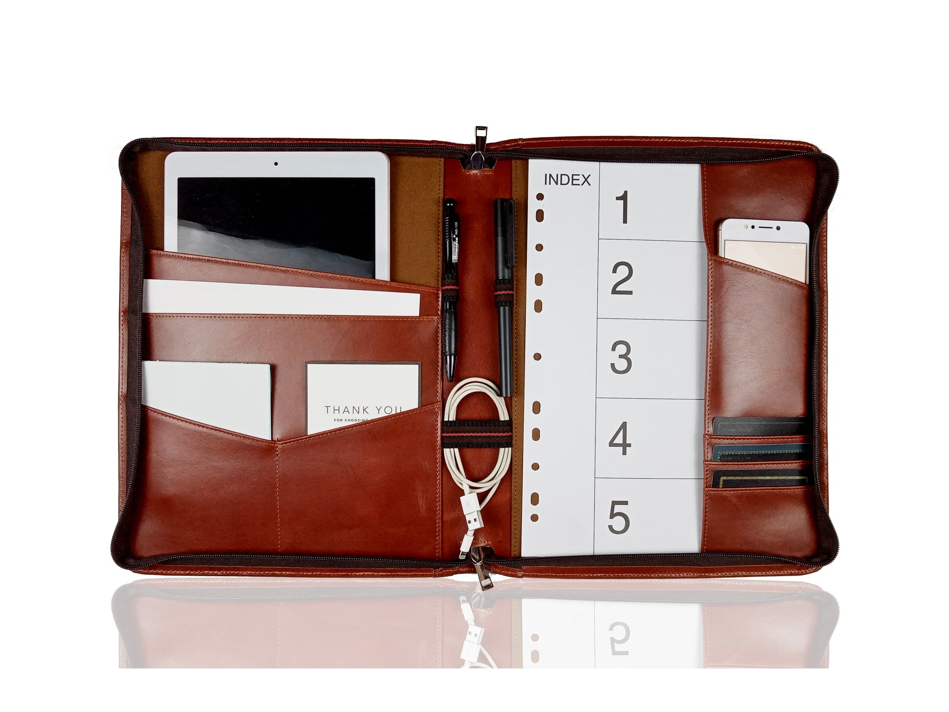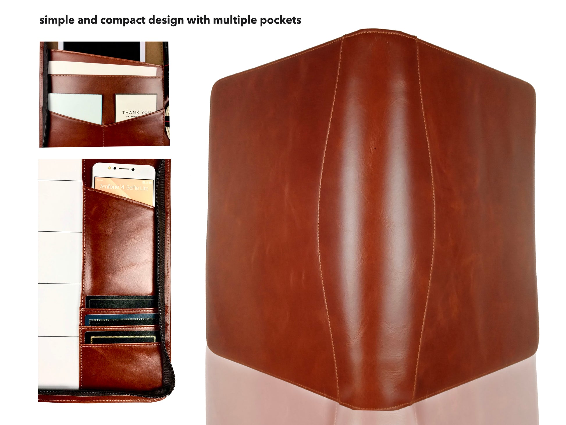 - √ Versatility - 1 large pocket for A4/ legal paper; 1 mid-size pocket for notebook; 2 small pockets; 1 side pocket for legal pad; 2 pen holder; 1 cable holder; 3 card slots