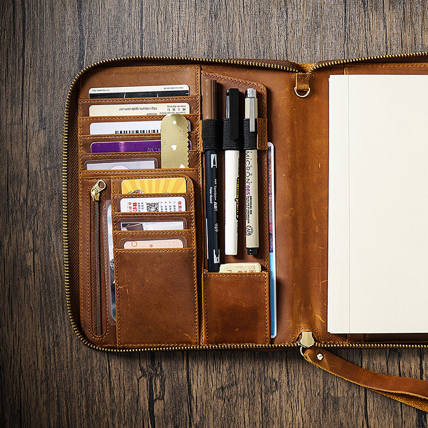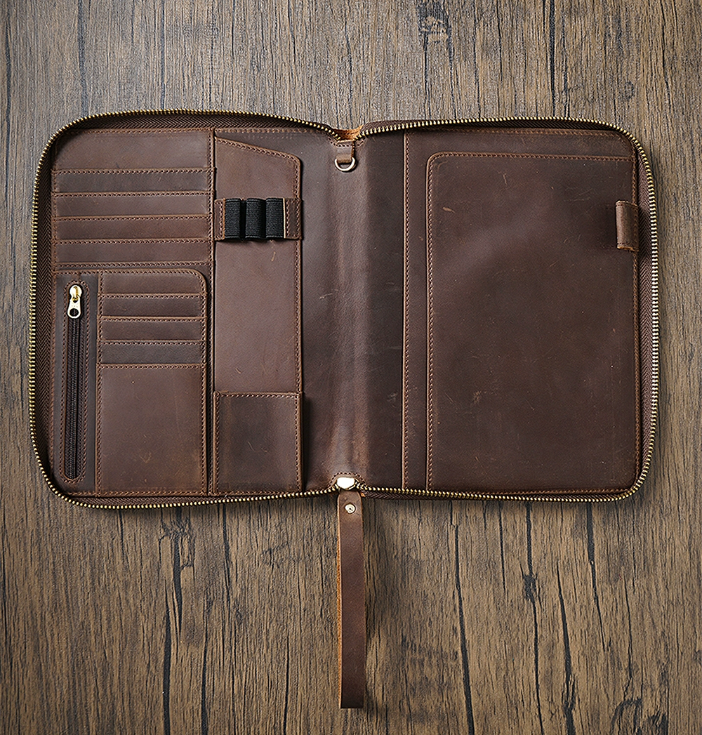 Genuine Leather Portfolio with Zipper, A5 File Folder, A5 Leather Holder, Gifts for Him/ Her
