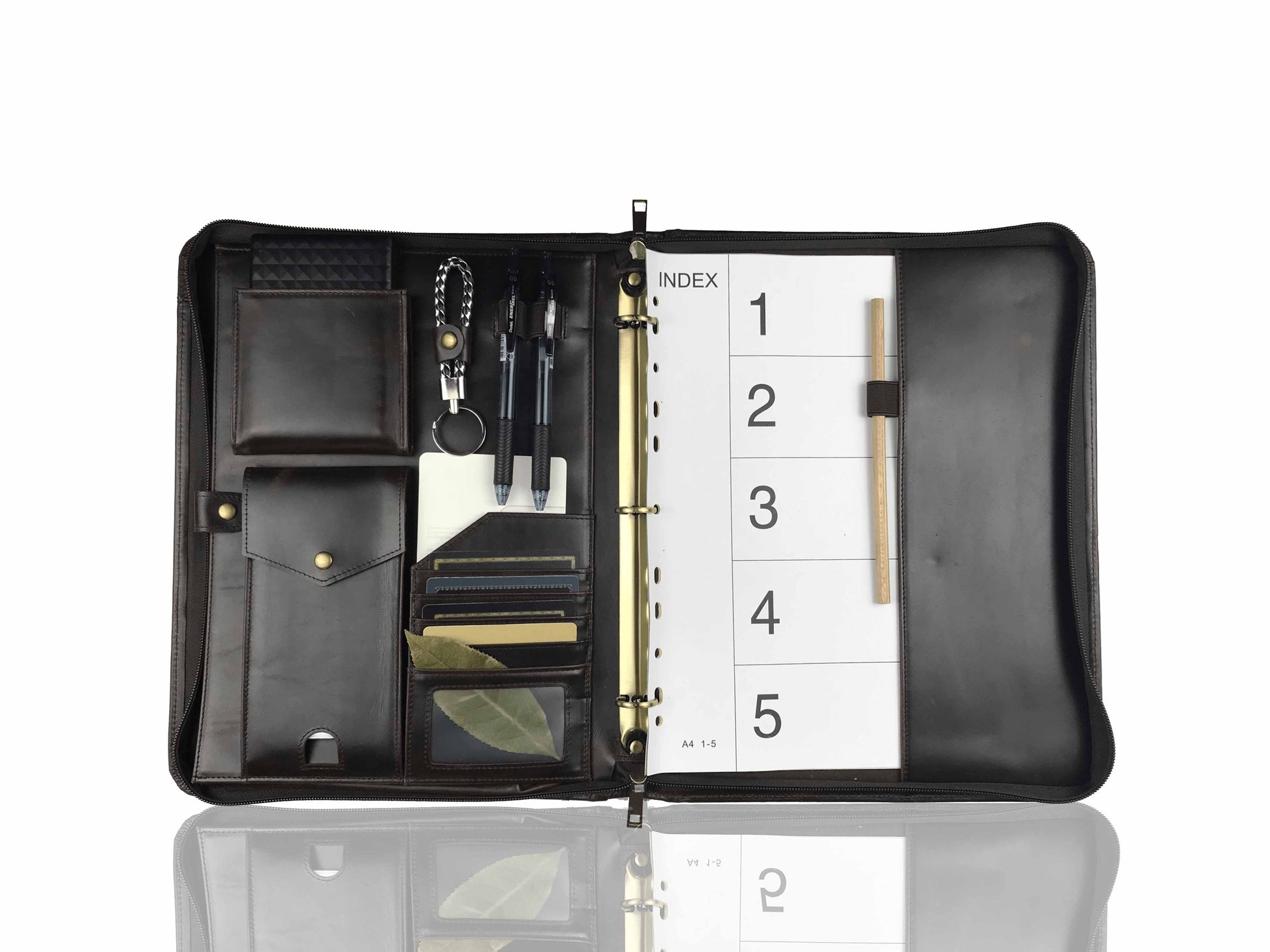 - √ Durable Construction: It's equipped with thick hardbound cover and strong stitching with best quality material to ensure durability of the leather portfolio.