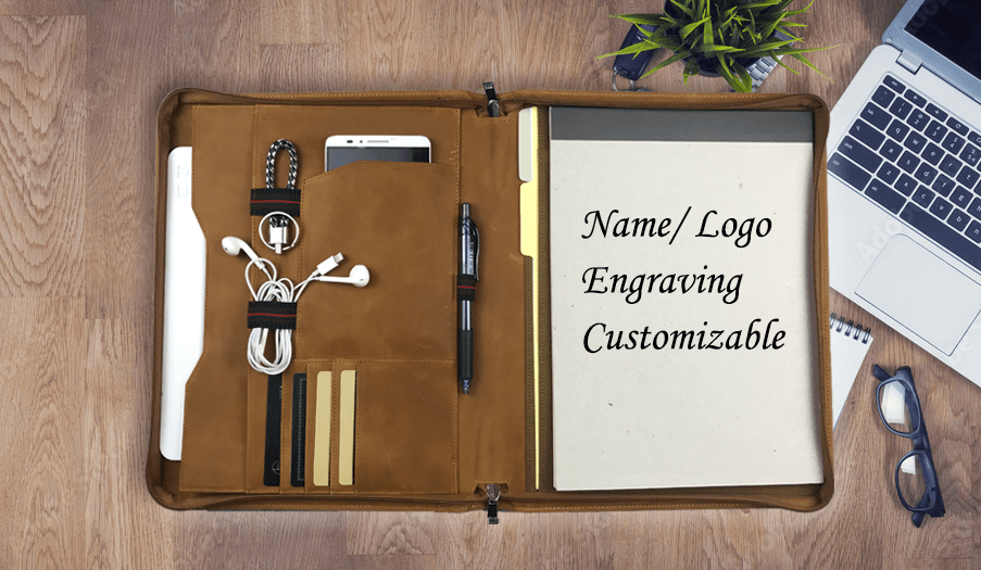- √ Perfect Work & Study Companion, Customisable Gift: Easy to carry, adapted to many different functions or activities, professional portfolio for business and study use, name/ initials/ inscriptions/ logo engraving available for customisation, perfect gift for family/ friends.