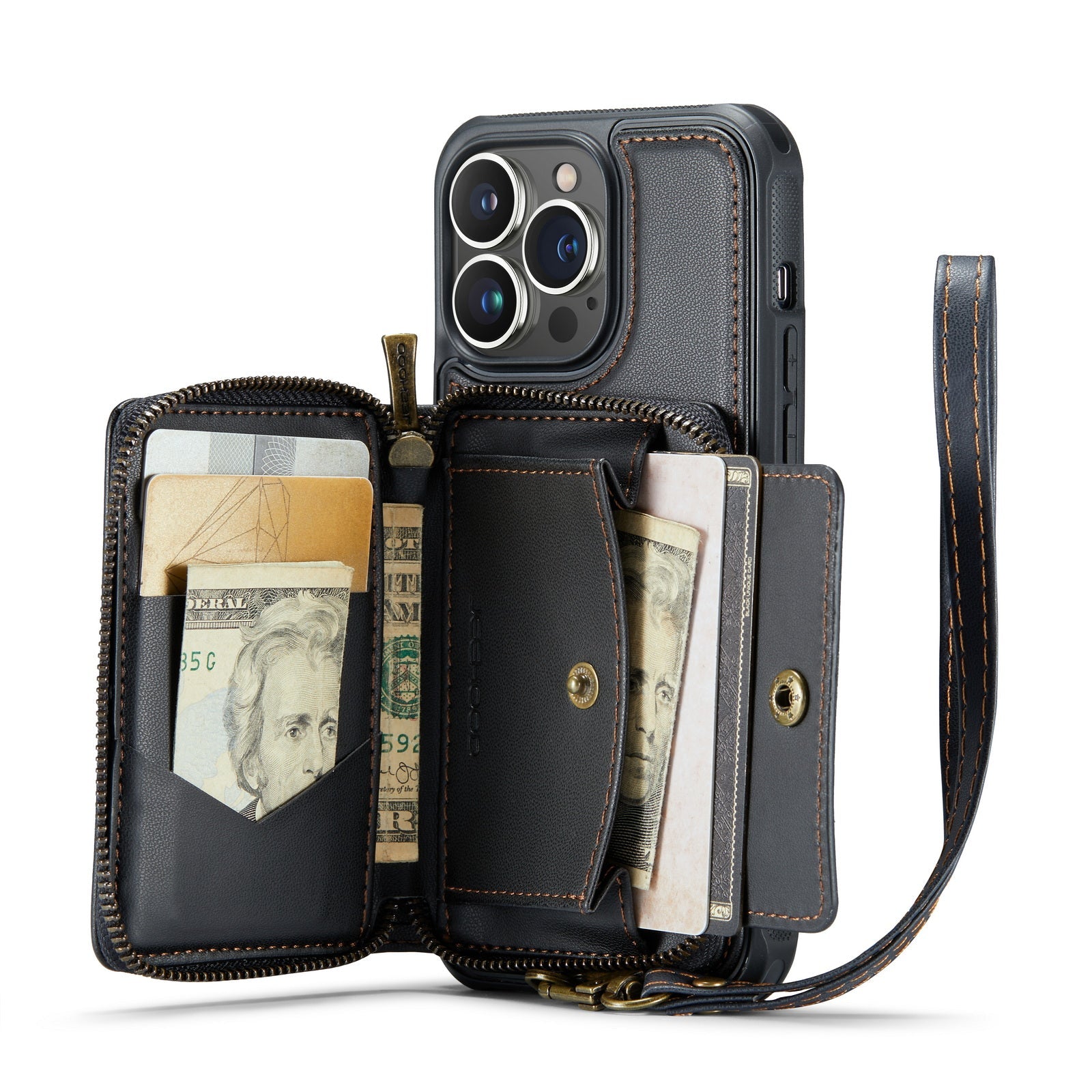 - Strap iPhone case with 3 card slots and 2 cash pockets, fine workmanship, stylish.