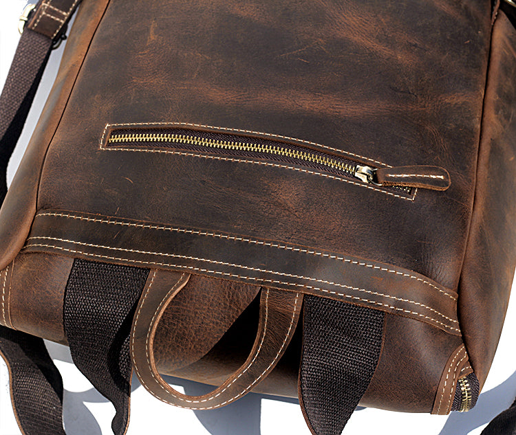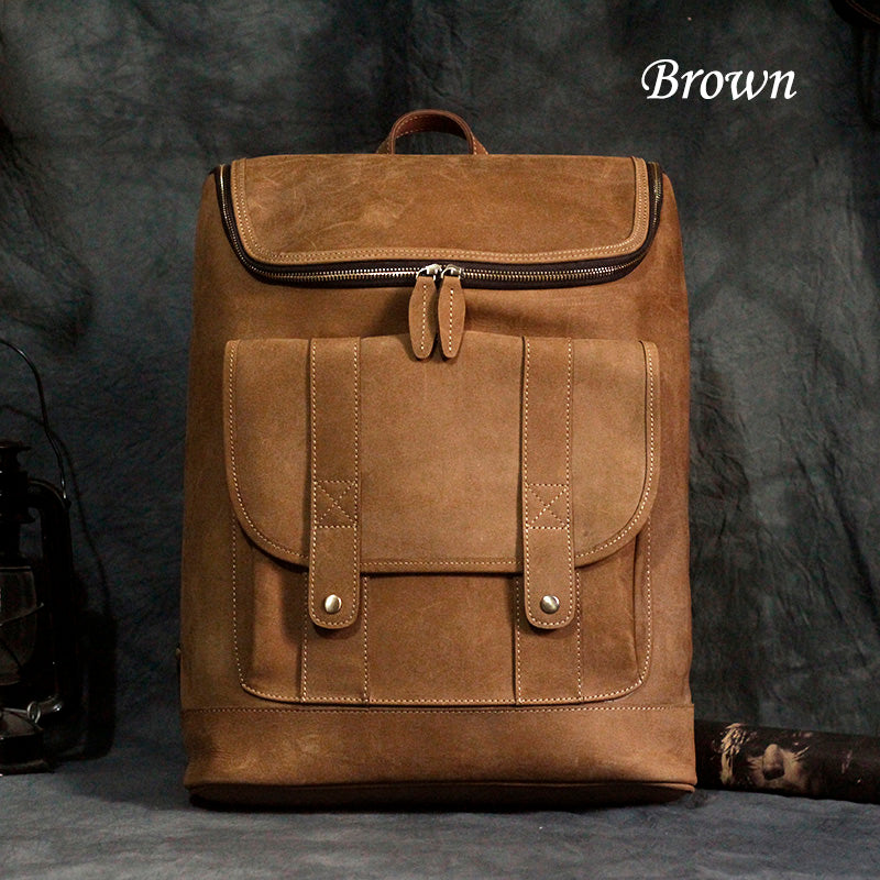 Vintage Full Grain Cowhide Leather Backpack for 15" Laptop Travel Hiking Camping Rucksack, Engraving Customization for Option