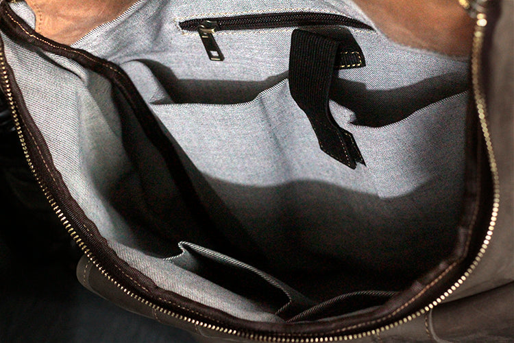 - Inner: 1 linen large pocket for 15" Laptop; 1 linen side pocket with stick for 12.9" iPad; 2 linen small pockets for smartphone; 1 zipper pocket